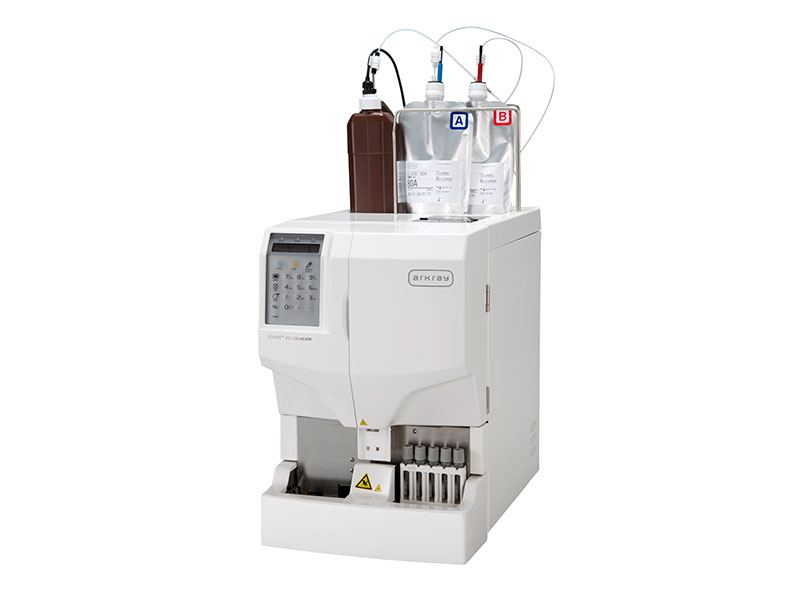 血液中のHbA1cを測定し、過去1~2ヶ月の血糖コントロール状態を調べる装置です。主に糖尿病の診断や治療経過の確認に使用されます。少量の血液で迅速に測定できるため、患者さんの負担が少ないのが特長です。