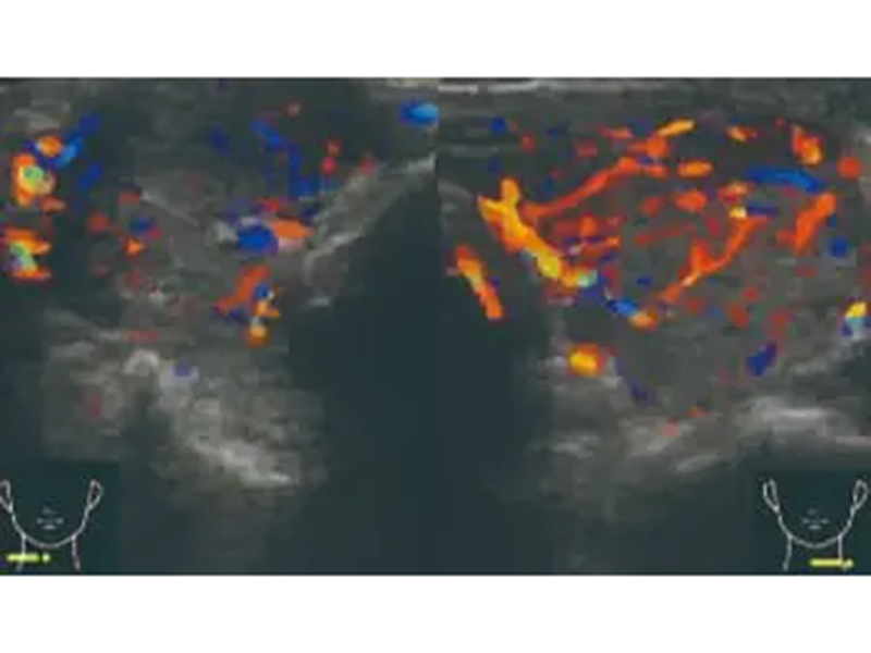 通常、甲状腺腫瘍に自覚症状はなく、よほど大きくならない限り、声のかすれや嚥下障害は起こりません。良性の腺腫様甲状腺腫は経過観察が基本で、年1~2回の超音波・血液検査で変化を確認します。